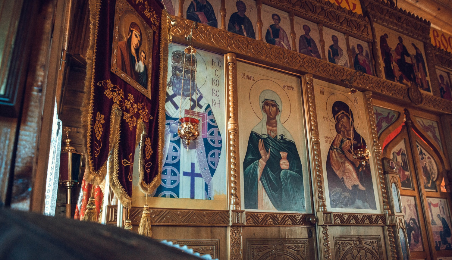Досто́йно е́сть я́ко вои́стинну блажи́ти Тя, Богоро́дицу, Присноблаже́нную и Пренепоро́чную и Ма́терь Бо́га на́шего. Честне́йшую Херуви́м и сла́внейшую без сравне́ния Серафи́м, без истле́ния Бо́га Сло́ва ро́ждшую, су́щую Богоро́дицу Тя велича́ем.